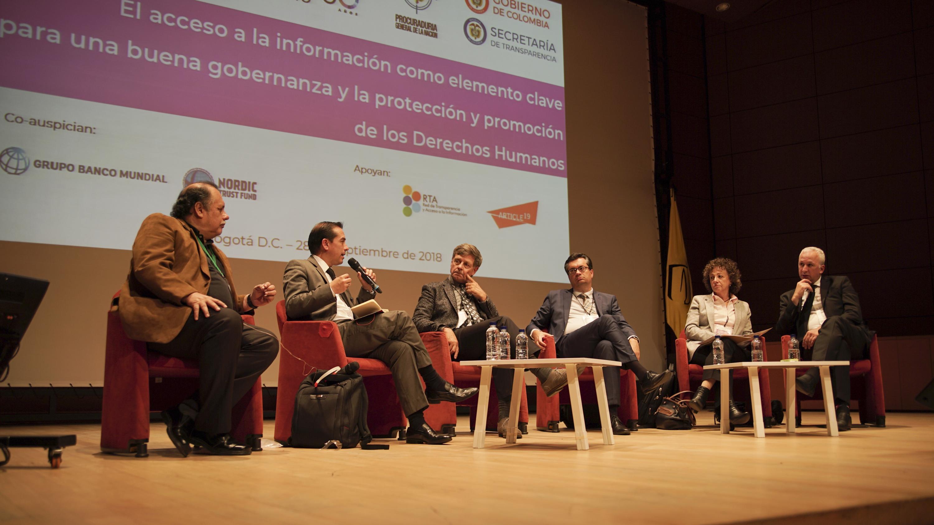 Este panel se desarrolló durante el evento: El acceso a la información como elemento clave para la buena gobernanza y la protección y promoción de los Derechos Humanos, en el marco de la celebración del III Día Internacional por el Derecho de Acceso Universal a la Información.  Fue organizado por la UNESCO, en alianza con la Universidad de los Andes, la Procuraduría General de la Nación de Colombia, la Secretaría de Transparencia de la  Presidencia  de  la  República  de  Colombia  y  otras  entidades  aliadas  internacionales,  regionales  y nacionales.