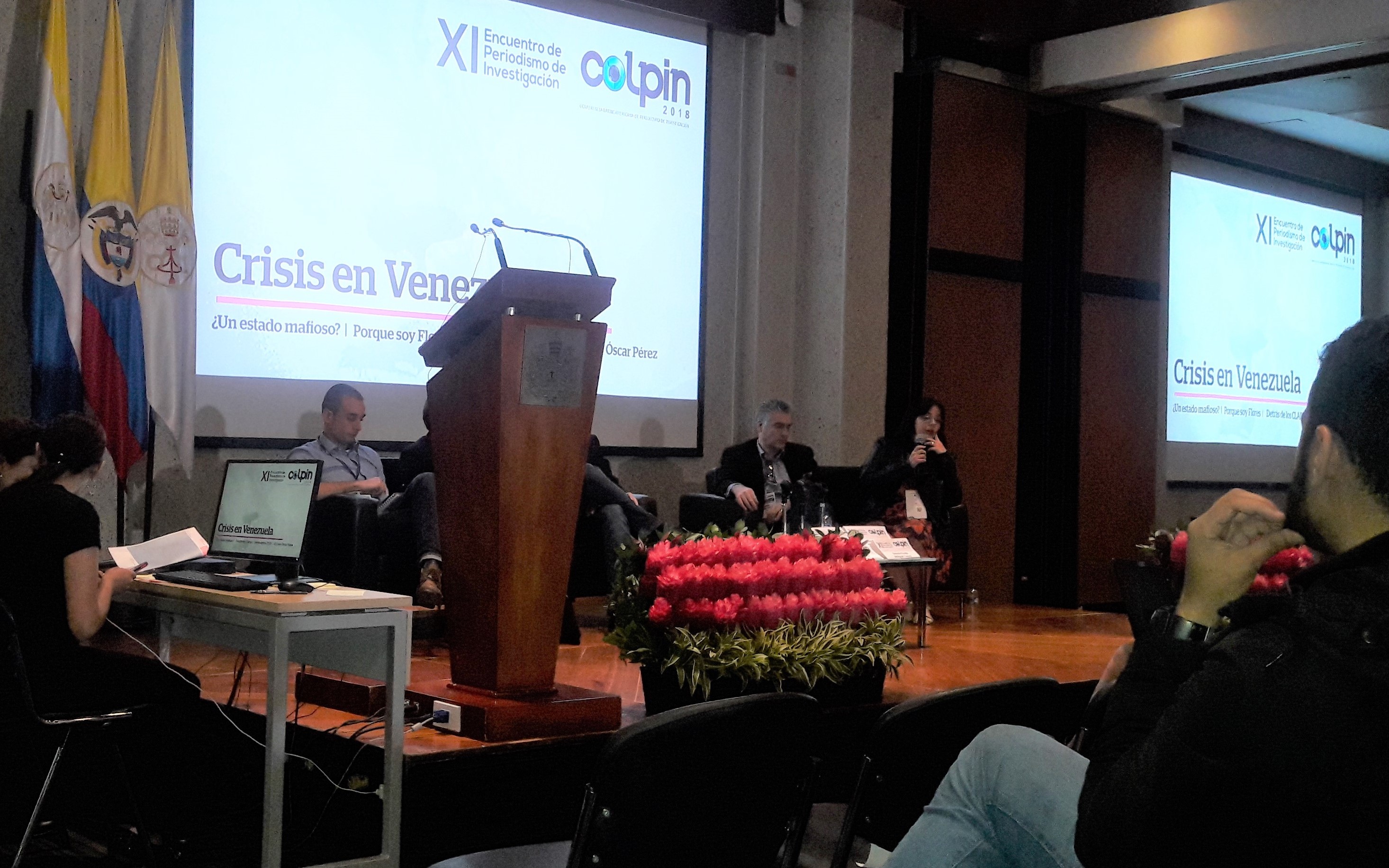 La mesa estuvo moderada por Raúl Peñaranda, periodista y analista político boliviano. Los otros expositores que participaron en el panel Crisis en Venezuela fueron: Jeremy McDermont, Periodista especializado en conflicto armado, crimen organizado y narcotráfico y codirector de InSight Crime; Giancarlo Fiorella, experto en periodismo digital forense, colaborador bellingcat; Roberto Deniz, periodista del medio ArmandoInfo.