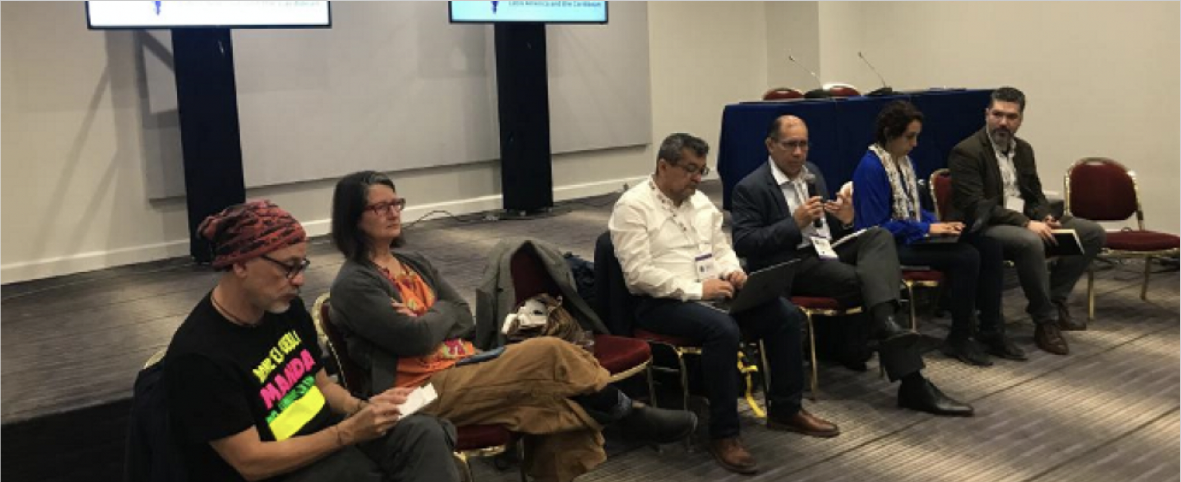 A continuación, Karina de UNICEF Panamá, contó su experiencia trabajando con indígenas en su territorio e interpeló el papel de organizaciones como Naciones Unidas en las intervenciones con este tipo de comunidades, la forma en la que se lleva a cabo la comunicación y resaltó la importancia de preservar saberes y fortalecer el vínculo con el Estado.