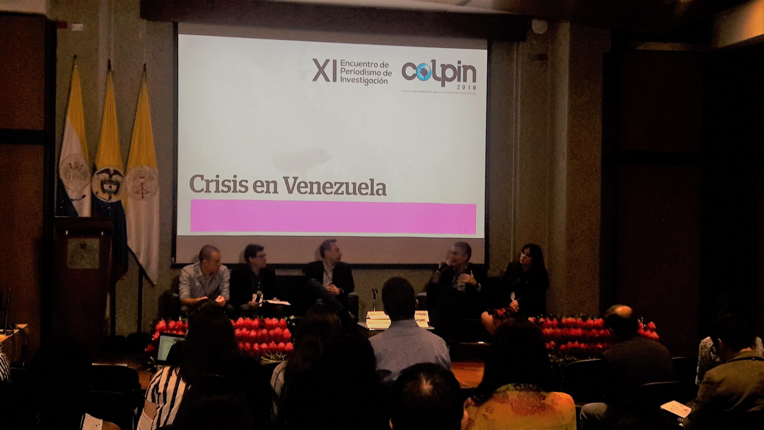 La mesa estuvo moderada por Raúl Peñaranda, periodista y analista político boliviano. Los otros expositores que participaron en el panel Crisis en Venezuela fueron : Jessica Carrillo, Periodista Venezolana, experta en medios digitales e impresos; Giancarlo Fiorella, experto en periodismo digital forense, colaborador bellingcat; Roberto Deniz, periodista del medio ArmandoInfo.