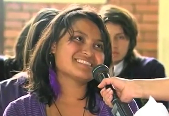 Diana Ángel visita nuevamente el municipio de Zipaquirá. Jóvenes del Liceo Integrado de Zipaquirá, el Colegio Santiago Pérez y el Colegio Vicenta Samper Madrid dialogan sobre las consecuencias de asumir una relación sentimental. Diana pregunta: ¿Ya se están relacionando? ¿Ya tienen novio o novia?